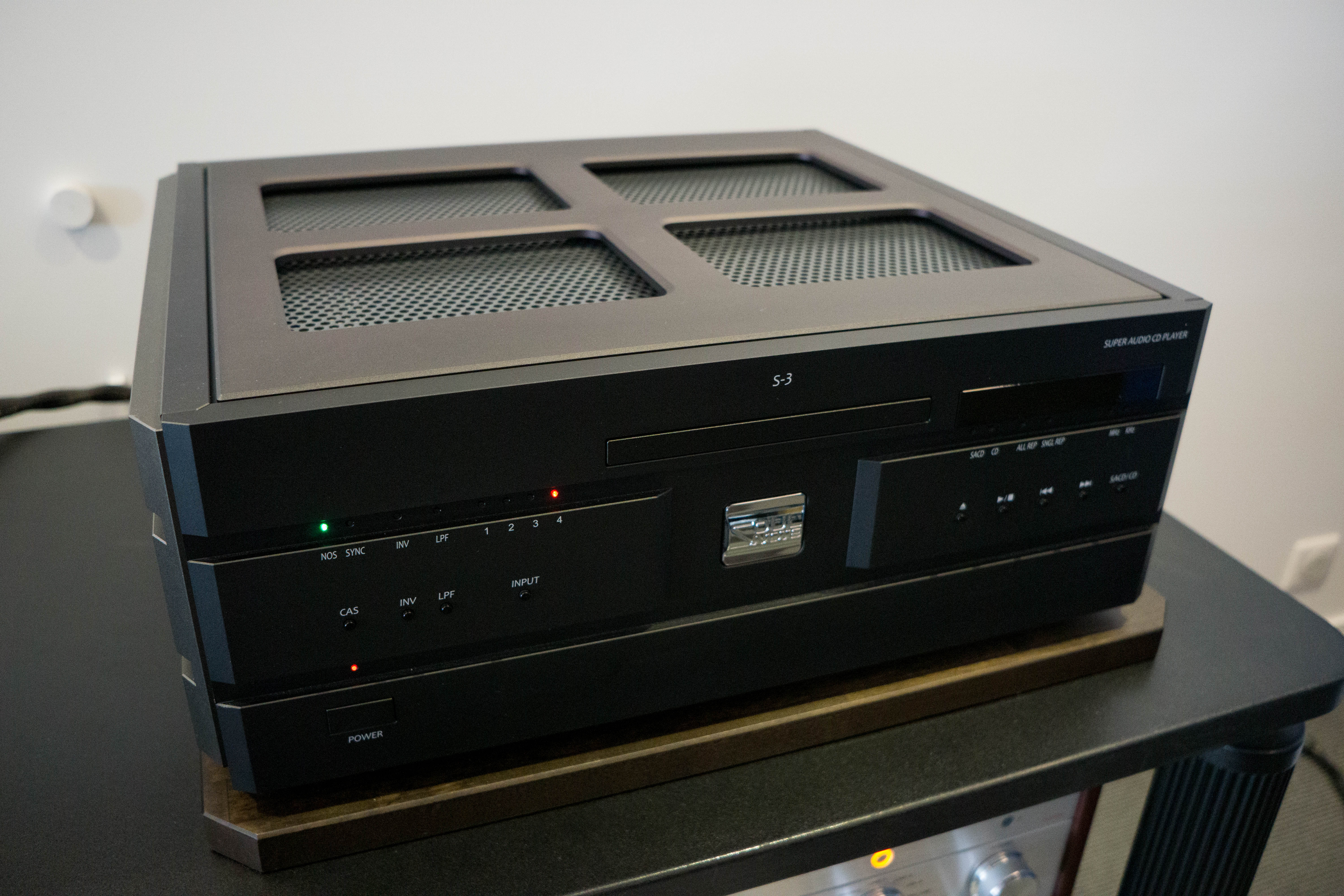 Récompensé « Diapason d’Or » par Diapason : « La musique libère l’aura de l’âme », indique le fabricant sur son site. A la réflexion, on y décèle une assez juste métaphore de ce qu’il nous est donné d’entendre avec ce S-3 Reference. A partir d’un SACD de piano, (Extemporale de Bernd Alois Zimmermann par Eduardo Fernandez, Bis), passé le temps de chargement qui s’explique par la mise en œuvre de différents circuits, servos et alimentations, on part pour un voyage qui s’éloigne des rives du tout-venant. Les notes sont libérées dans l’espace, libérées en énergie et en variabilité de cette énergie, libérées surtout de leurs attaches. On perçoit une quantité d’informations de type ambiance de salle, bruits et cliquetis d’instruments, réverbération, que les circuits numériques noient d’habitude dans un brouillard qui n’a rien de musical, tant que l’on n’a pas entendu le même disque joué par un lecteur de la classe du S-3. C’est difficile à décrire, mais il y a plus de tout, de présence, de matière, de subtilité, de finesse et de résolution dans le jeu de ce piano qui se matérialise devant nous. Encore plus lorsque l’on permute sur l’horloge externe X-3. Bien que livrée avec un câble de liaison 50 Ω, le fabricant insiste sur la supériorité du câble RCC-1 en option, invite même à tester le sens de branchement. Bien nous en a pris. Ainsi « augmenté », le S-3 Reference devient le lecteur SACD à battre, pour un tarif qui n’a rien d’inouï si l’on considère que l’on a aussi un Dual Dual DAC PCM 32 Bits/768 kHz et DSD512 ultra performant, sans supplément de prix. Faites les comptes. »