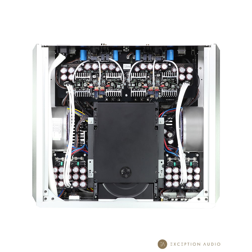 Son châssis massivement découplé accueille deux alimentations surdimensionnées, comparables à celles d’un amplificateur de puissance, avec transformateurs toroïdaux imposants et batteries de condensateurs à charge rapide pour une réactivité instantanée et une absence totale d’inertie.